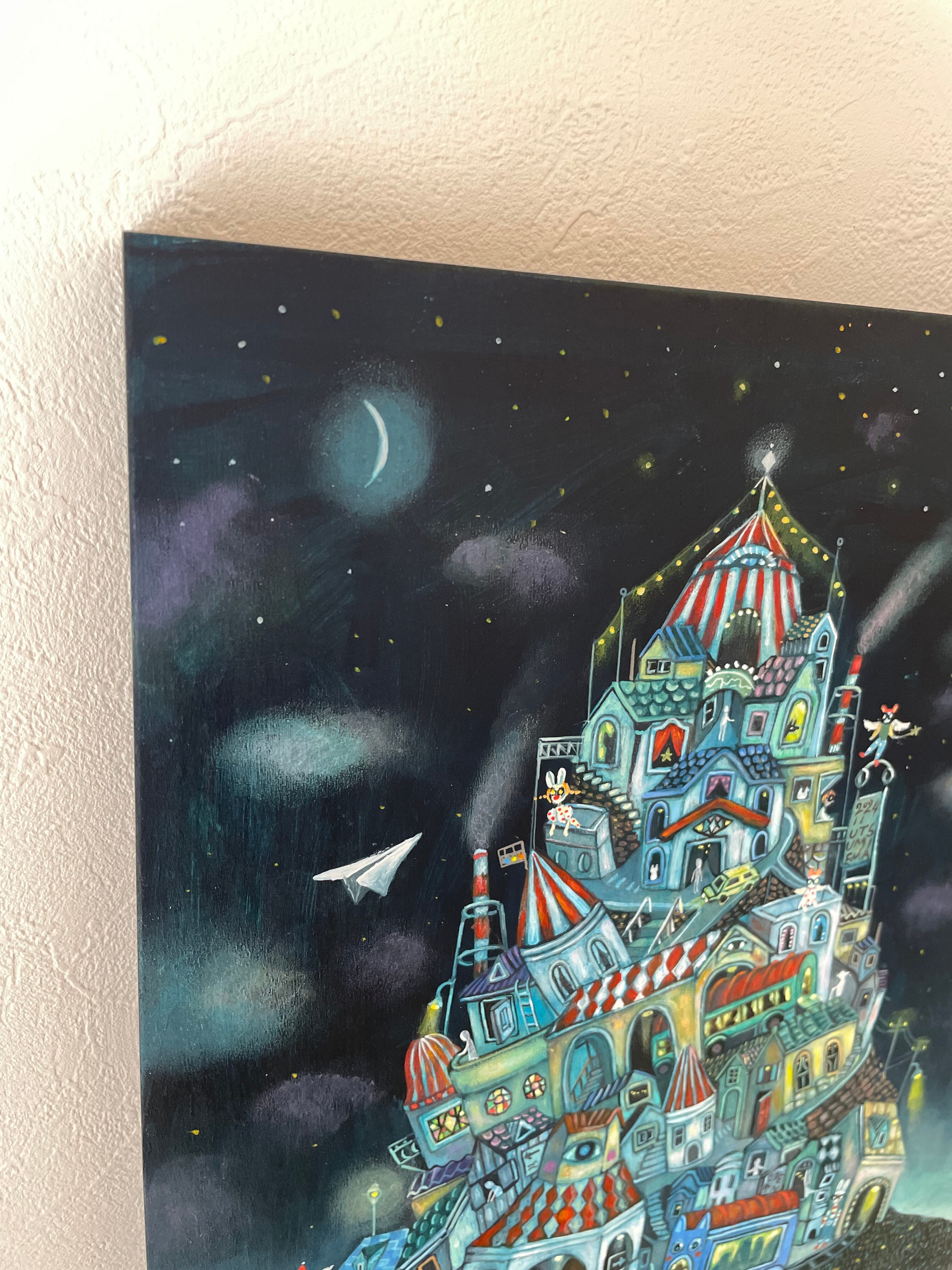 月夜の町。