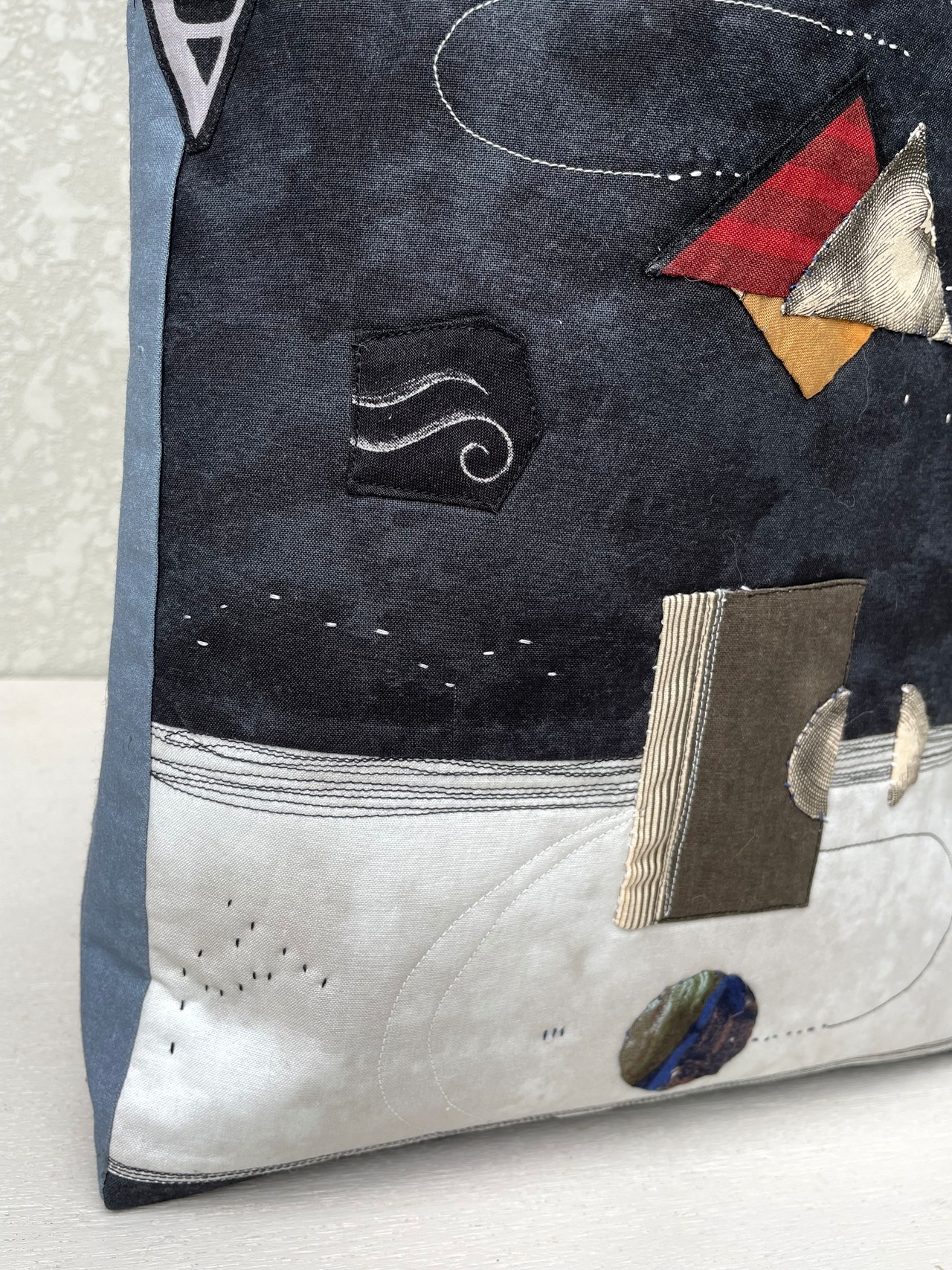 布の断片をつなぐたび、記憶のような形が浮かび上がります。